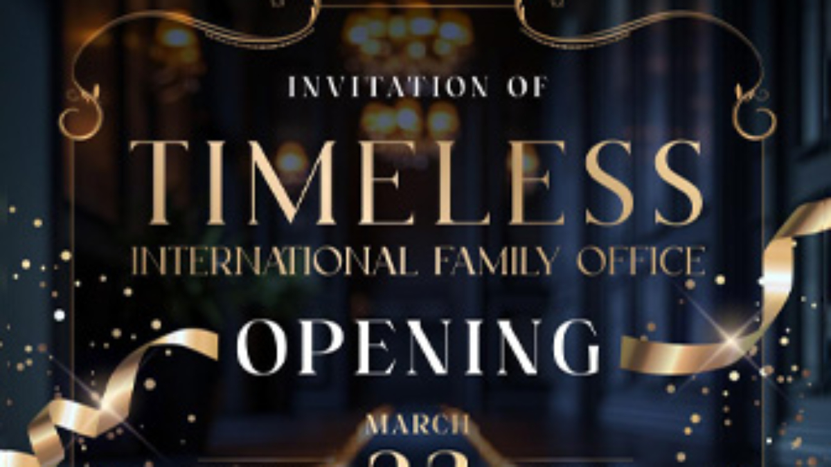 Grand Opening of Timeless International Family Office We are delighted to invite you to the grand opening of Timeless International Family Office, a momentous occasion that marks the beginning of a new chapter in our journey.Date: 23rd March 2024Time: 11:00 AMVenue: 37-3A & 37-5, The Stride BBCCJoin us as we celebrate this milestone and embark on a journey towa